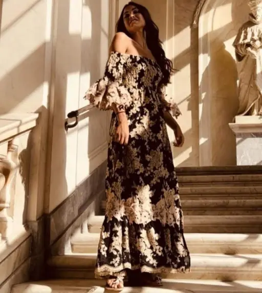 44-52р.Безумно красивое, просто сказочной красоты платье ,Италия, в богемном стиле...Платье полностью в шикарном ,невероятно волшебным по своей красоте шитье с золотой нитью с мерцанием, отделка кружевом.. Идеальный фасон придаст стройности, кружево и шитье создаст неповторимый образ...В таком роскошном платье вы будете чувствовать себя королевой-оно просто прелесть...неописуемой красоты! Чёрное с золотом+ мерцающее шитьё-это всегда смотрится дорого и элегантно.