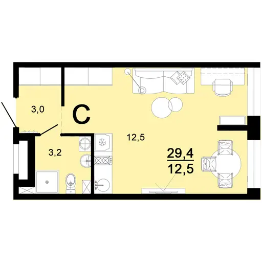 Продаю квартиру-студию 30 кв.м., стоимость - 3 860 т.р. в Горячем Ключе 3860000