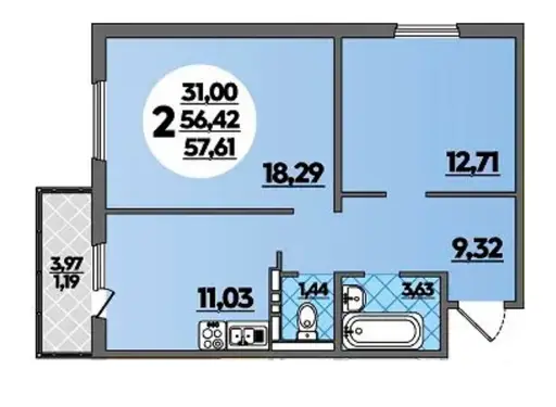 2комнатная квартира 57,6 м2 с ремонтом - Ростов-на-Дону 5743716