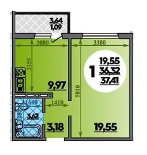 1-комн квартира 37,41 м2 с ремонтом - Ростов-на-Дону 3475389