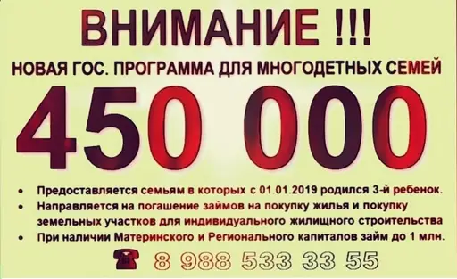 Субсидия 450 000 (Ипотечный капитал) за 3 ребенка!