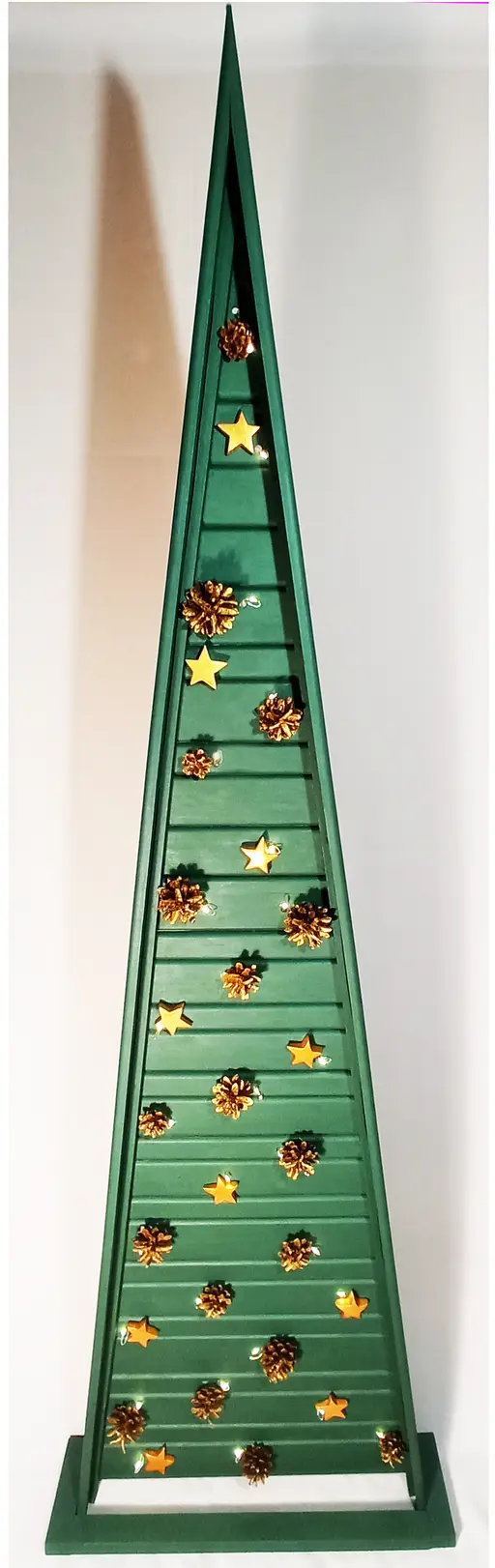 Елка декоративная, новогодняя, деревянная (сосна). Размер: высота 1490 мм х ширина 480 мм х толщина 60 мм Цвет: зеленый, золотой Гирлянда: роса, 5 м, теплый белый свет Гирлянда легко демонтируется
