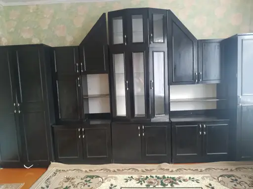 стенка-горка черного цвета, шкаф для посуды. шкафы для одежды и .полки