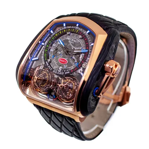 Гарантированно подлинный мужской бугатти Jacob & Co Twin Turbo Furious размером 57 x 52 мм из 18-каратного розового золота. Дымчатый сапфир с надписью «Jacob & Co». Логотип и логотип Bugatti, внутреннее кольцо Neoralith синего цвета; черные индексы с белым Superluminova; Стрелки: антрацит, синий цвет, белый Superluminova. Эти прекрасные часы совершенно новые, ни разу не ношенные, они выполнены из черной кожи с черной строчкой; Застежка: раскладывающаяся застежка из розового золота 18 карат. Водонепроницаемость до 30 метров. Ограниченная серия: 18 штук. Часы поставляются с двухлетней гарантией от Da Vinci, коробкой Jacob & Co, документацией, инструкциями и сертифицированной розничной оценкой от Da Vinci. под заказ !