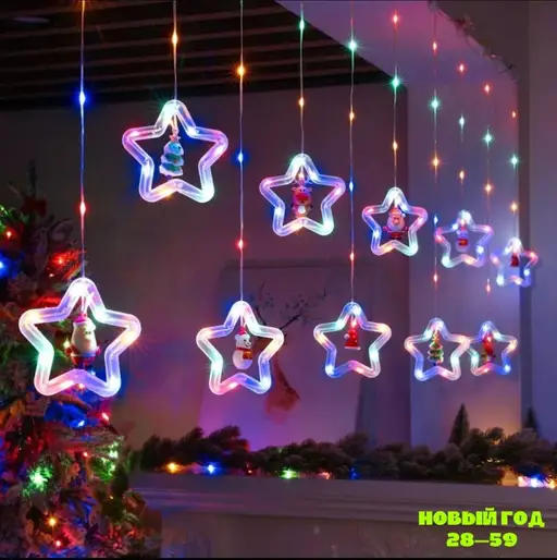 Продам новую гирлянду в комплекте идут игрушки,которые крепятся на нее.Гирлянда цветная имеет 8 режимов свечения