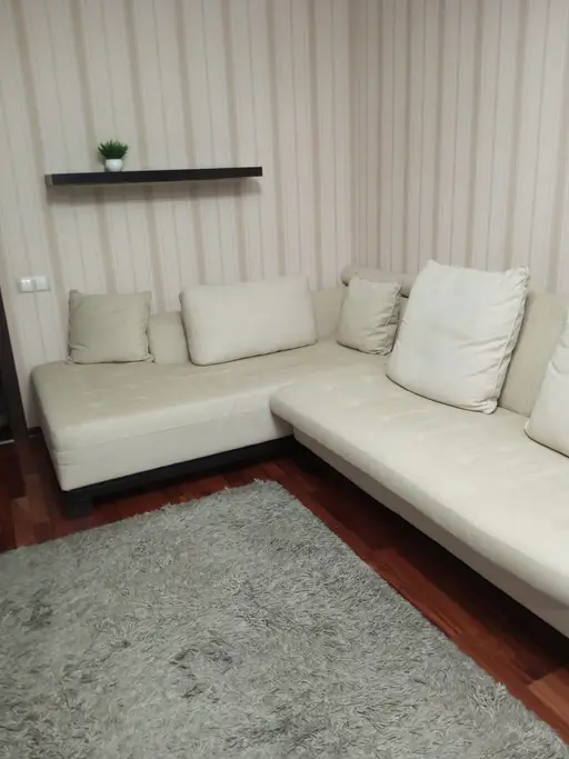 Большой угловой диван. В хорошем состоянии. Не скрипит. Очень просто раскладывается. В комплекте большие подушки с валиком и маленькие. Все вопросы по телефону. Самовывоз. Не большой торг.