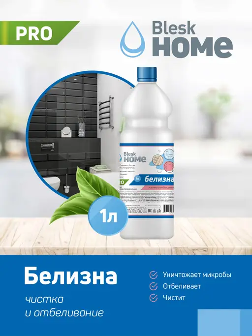 Предназначена для отбеливания и удаления пятен с белых хлопчатобумажных, льняных изделий; для мытья эмалированных, фарфоровых, фаянсовых поверхностей, облицовочной плитки, пластика; для чистки унитазов, мусорных ведер. Состав: вода деминерализованная, гипохлорит натрия, гидроксид натрия. Способ применения: нанести средство на загрязненную поверхность, оставить на 30 минут, затем смыть водой. Предупреждение: хранить в недоступном для детей месте. В случае попадания в глаза немедленно промыть большим количеством воды и обратиться к врачу. Условия хранения: от +5 °C до +25 °С. Срок годности: 2 года. Изготовитель: ООО «Чисто и Ко». Юридический адрес: 353460, Россия, Краснодарский край, г. Геленджик, ул. Олега Анофриева, д. 1, к. 8, кв. 17/18. Адрес производства: 353460, Россия, Краснодарский край, г. Геленджик, Южная промышленная зона, 4 км от Сухумского шоссе. Эл. почта: info@bleskhome.ru Тел.: +7-938-531-07-77 У нас большой каталог бытовой химии, обращайтесь для получения прайса!