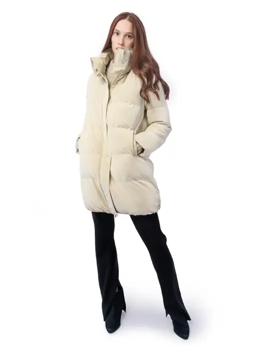 При создании куртки кремового цвета дизайнеры марки PATRIZIA PEPE сосредоточили внимание на комфорте. Для пошива модели прямого кроя в стиле спорт-шик использовали плотный материал из искусственной кожи ,который не продувается ветром. Легкий утеплитель равномерно распределили по стеганым камерам, поэтому изделие хорошо согревает, а воротник-стойка защищает шею от холода.